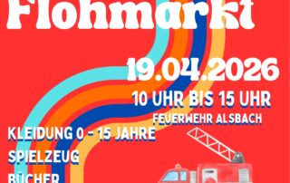 Anmeldung Flohmarkt 19.04.2026 Die Jugendfeuerwehr Alsbach veranstaltet am Sonntag, den 19.04.2026 wieder einen Flohmarkt. Das Anmeldeformular finden Sie hier: Anmeldeformular Bei Rückfragen zu der Veranstaltung bitte per Mail an jf@feuerwehr-alsbach.de wenden.